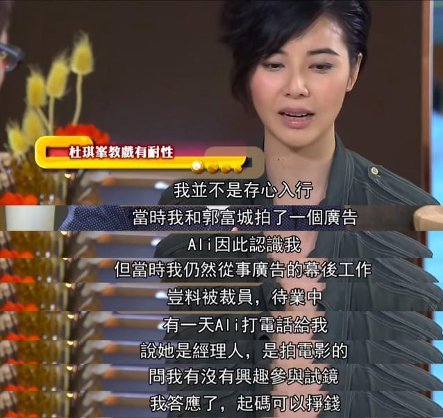 她因为一条广告片被经纪人发掘,之后在杜琪峰导演的支持下,她随后又和黎明、刘德华这两位天王合作过。