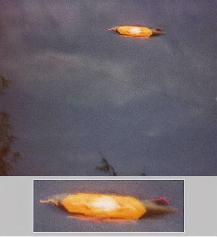 这张照片是文森特·佩纳1966年12月在纽约附近的蒂奥拉蒂湖拍摄的。佩纳说:"一个铜色的异物突然出现,没有发出任何声音。